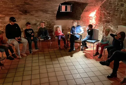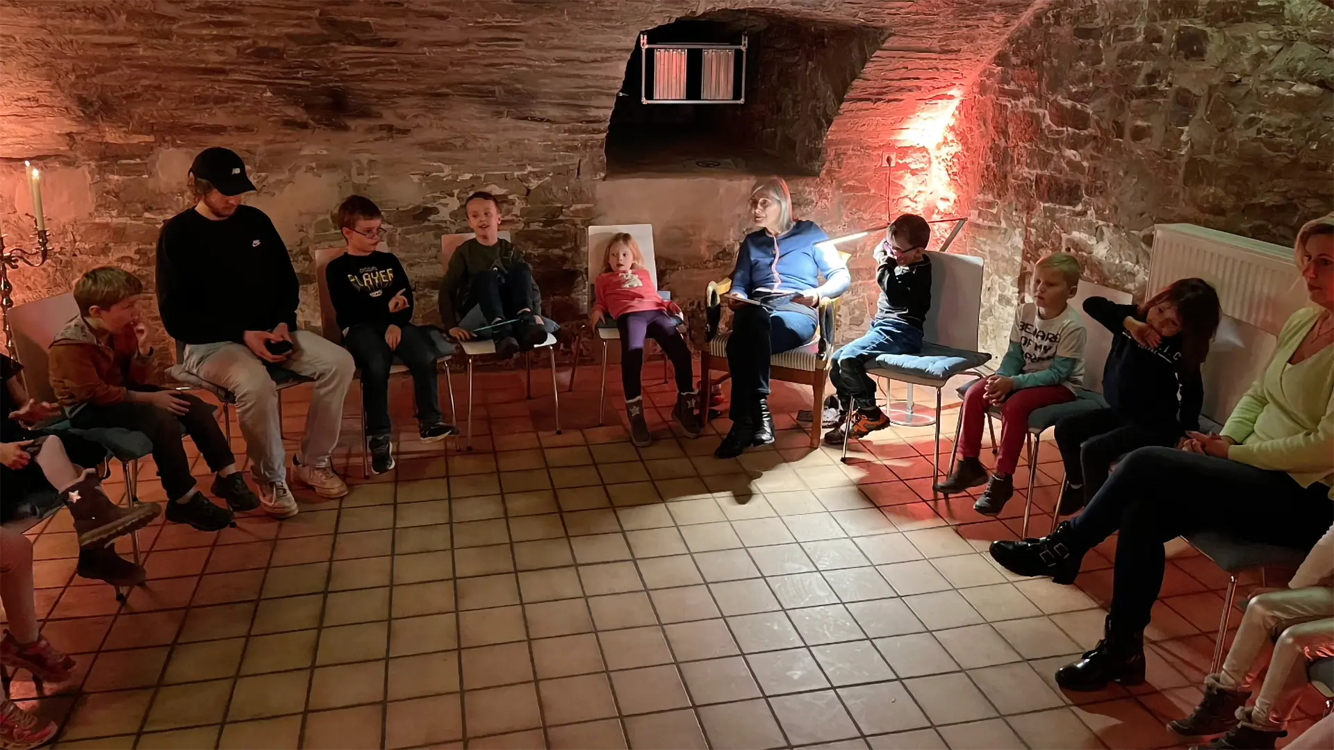 Mit einer tollen Aktion waren Vorstandsmitglieder der Bürgerstiftung beim Vorlesetag mit dabei. Rahmen dafür bildete das Schloss mit seiner schönen Remise und seinem fantastischen Gewölbekeller.