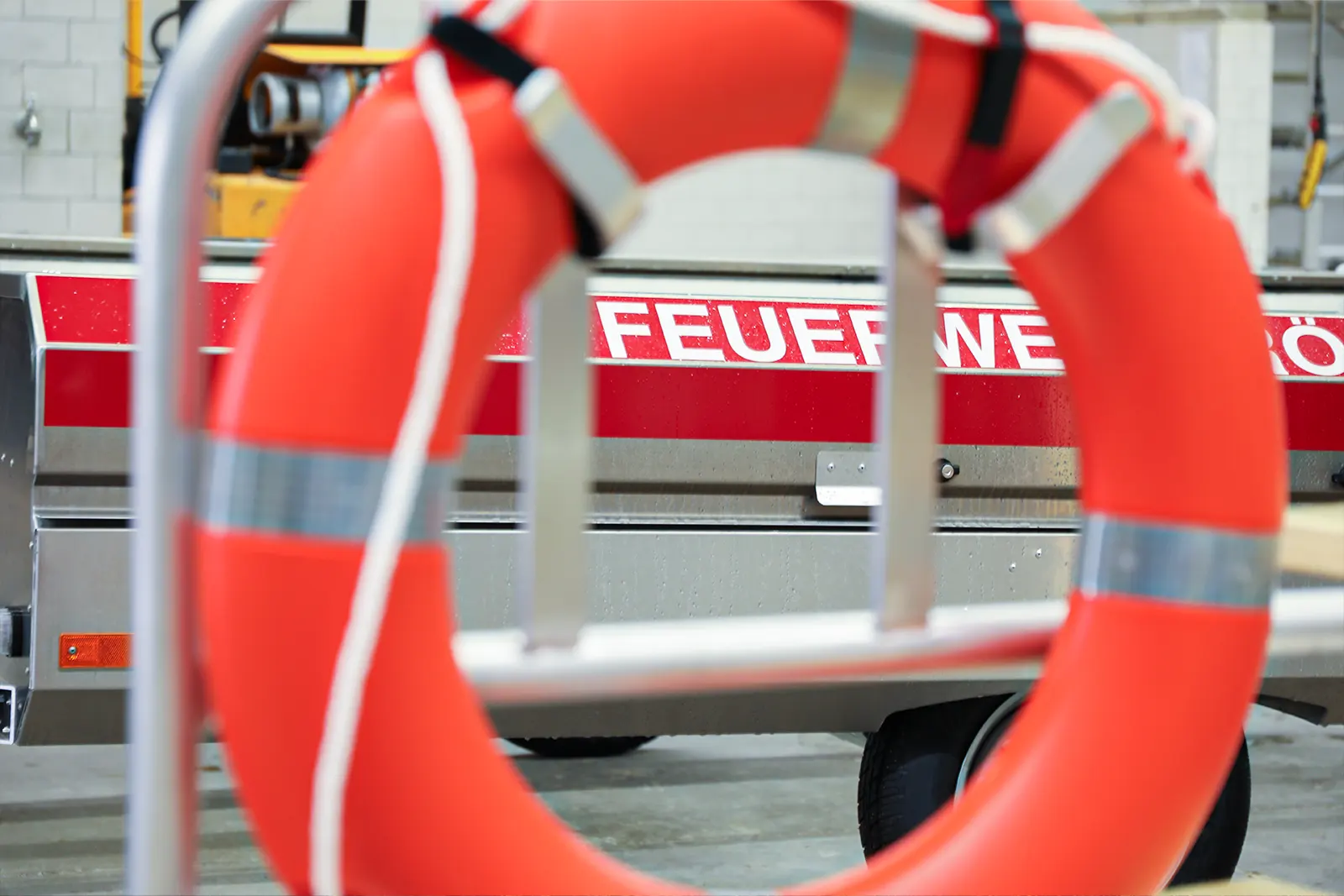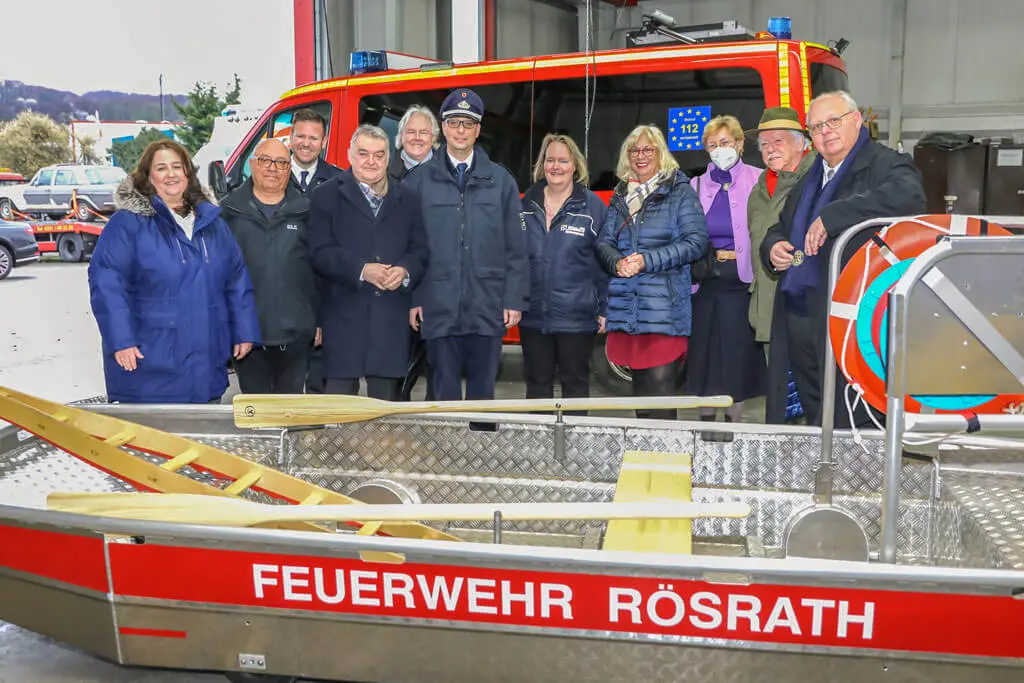 Die Flutkatastrophe im Juli 2021 steckt allen noch in den Knochen. Auch Rösrath war schwer betroffen. Wichtig in solchen Gefahrenlagen ist für die Retter an vorderster Front ein spezifisches Einsatzmittel. Solch ein ausgerüstetes festes Boot fehlte bisher in Rösrath. Hier konnte nun die Bürgerstiftung Rösrath mit dem Rotary Club Overath-Rösrath/Bergisches Land helfen und ein professionelles und vielseitiges Aluminiumboot an die Rösrather Freiwillige Feuerwehr übergeben. Bei der Übergabe waren neben den Vertretern der Feuerwehr, der Bürgerstiftung und des Rotary Club, die Bürgermeisterin Bondina Schulze und der Innenminister des Landes NRW Herbert Reul zugegen. Den Anwesenden wurde die Vielseitigkeit des Bootes bei Flutereignissen im Flachwasser und bei der Eisrettung erläutert.