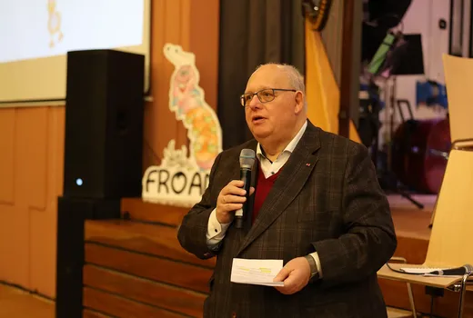 Wir sind überwältigt: 520 Besucherinnen und Besucher, mehr als die Hälfte davon Kinder, waren am Sonntag, 8. Dezember, beim großen Kinderkonzert der Bürgerstiftung Rösrath in der Aula des Schulzentrums Freiherr vom Stein in Rösrath. Das Konzert für Kinder von 3 bis 10 Jahren sowie deren Geschwister, Eltern, Großeltern und Begleiter war Teil des Aktionsjahres anlässlich des 20. Bestehens der Bürgerstiftung Rösrath. Gespielt und vorgelesen wurde die Kindergeschichte „Warum mein Bruder ein Kauz ist“ von Alexander und Sebastian Hässy. Dazu spielte das rund 60-köpfige Orchester der Jungen Sinfonie Köln e.V. unter der Leitung von Dirigent Kai Schuster. Sieben Vorleser, darunter der bekannte Musiker Henning Krautmacher (ehemals Sänger der Höhner) und Bürgerstiftungs-Vorstand Stephan Braun, trugen die Kindergeschichte vor. Dabei wurden die Kinder sowohl musikalisch als auch pädagogisch in das Stück eingebunden. Norbert Lenke, Vorsitzender der Bürgerstiftung, begrüßte alle Anwesenden und erwähnte mit stolz, dass dies „ein Tag extra für die Kinder sei, deren Unterstützung ein besonderes Anliegen der Arbeit der Bürgerstiftung Rösrath sei“.